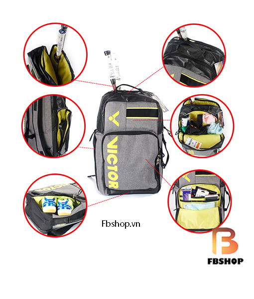 Balo cầu lông Victor 3010 Kết hợp các ưu điểm của ba lô và túi đựng vợt, mẫu balo này không chỉ có khoang chứa lớn, mà còn cần sự tiện lợi và tính cơ động. Ngoài ra, túi phía trước cho phép lưu trữ quần áo thích hợp (ngay cả áo khoác mùa đông), đồ bảo hộ và vật dụng cá nhân. Cuối cùng nhưng không kém phần quan trọng, ngăn đựng vợt, túi đựng giày và túi lưới ấm đun nước đều được trang bị. Với màu sắc đơn giản và phong cách chuyên nghiệp, nó đặc biệt phù hợp với các cây vợt.