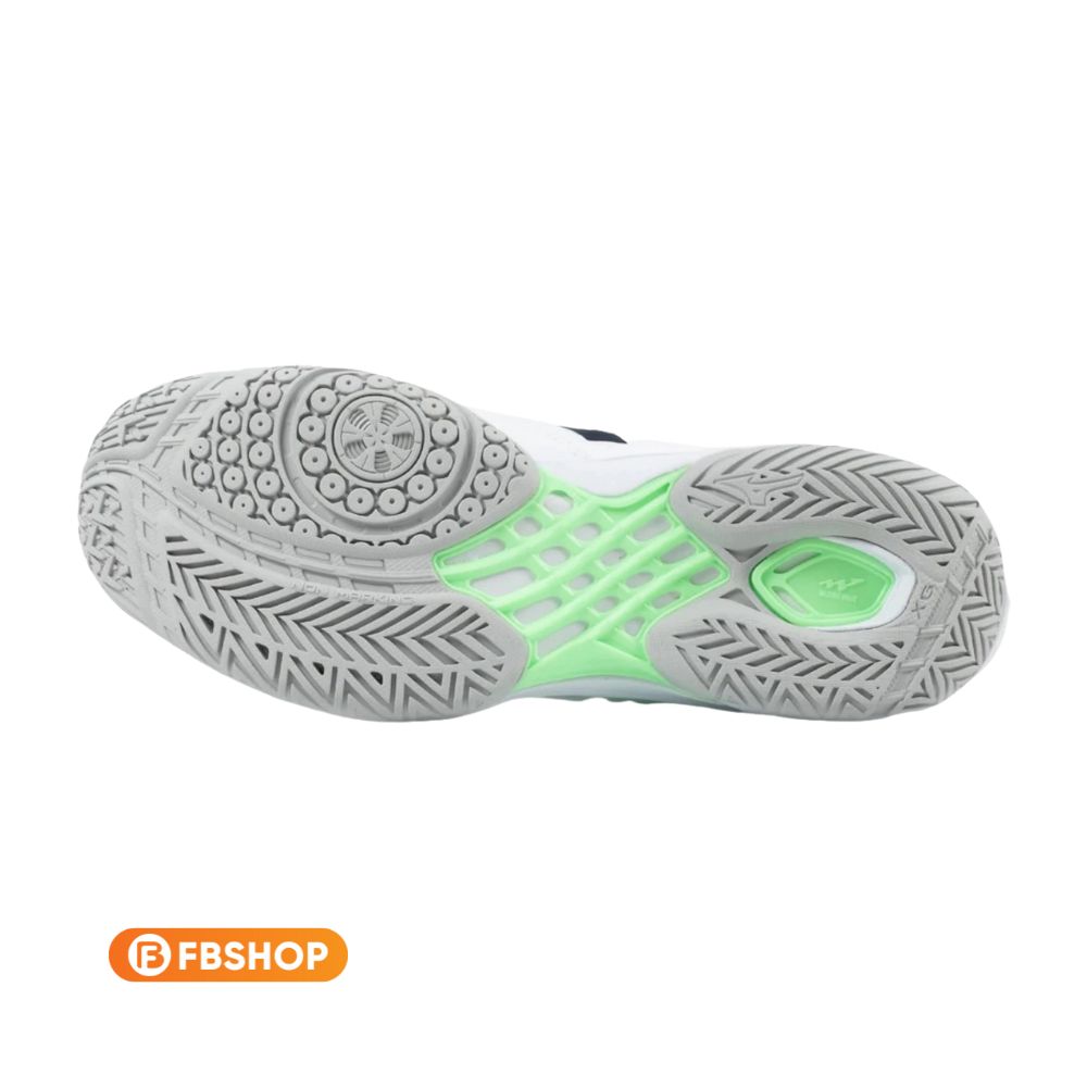 – XG RUBBER: Cao su cấp độ cao nhất của Mizuno giúp tối ưu hóa độ bám sân, đặc biệt hiệu quả trên các mặt thảm thi đấu chuyên dụng.