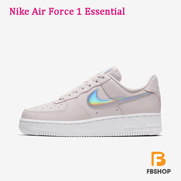 Giày Nike Air Force 1 Essential là mẫu giày sneaker được yêu thích của thương hiệu Nike năm 2020 . Mẫu giày được thiết kế theo phong cách cổ điển với form giày giống Nike AF 1 Low All White – được ra mắt vào năm 1982 được lấy cảm hứng từ những chiếc chuyên cơ dùng để chở Tổng thống Mỹ có tên gọi là Không lực Một hay Air Force One. Bên cạnh đó, Giày Nike Air Force 1 Essential có phối màu hồng nhẹ xinh xắn tạo nên diện mạo vừa giản đơn, cổ điển lại vừa thời thượng, cá tính. Cùng Fbshop đi xem chi tiết sản phẩm huyền thoại này nhé.