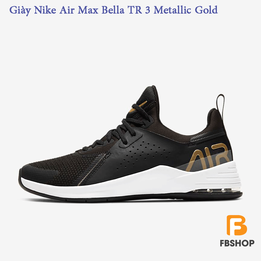 - Giày Nike Air Max Bella TR 3 Metallic Gold cung cấp lớp đệm ổn định, thoải mái để tập tạ và luyện mạch.