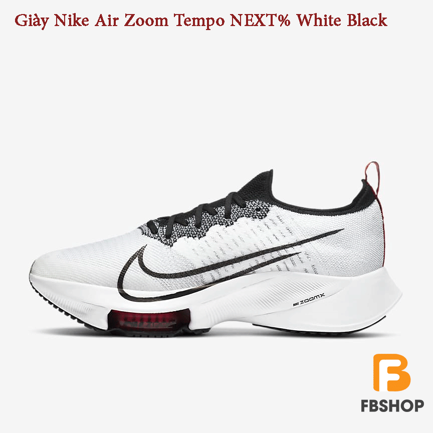 - Về cơ bản, đôi giày Nike Air Zoom Tempo NEXT% White Black khá phù hợp để người dùng luyện tập các bài tập chạy biến tốc với tốc độ cao nhằm chuẩn bị cho các cuộc chạy đua.