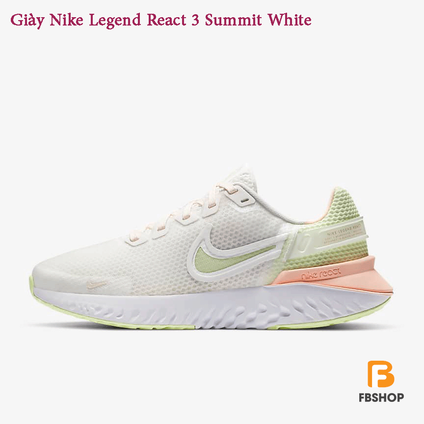 - Giày Nike Legend React 3 Summit White thích hợp cho người bắt đầu chạy bộ, tập gym và mang nó như một đôi giày sneaker hàng ngày.