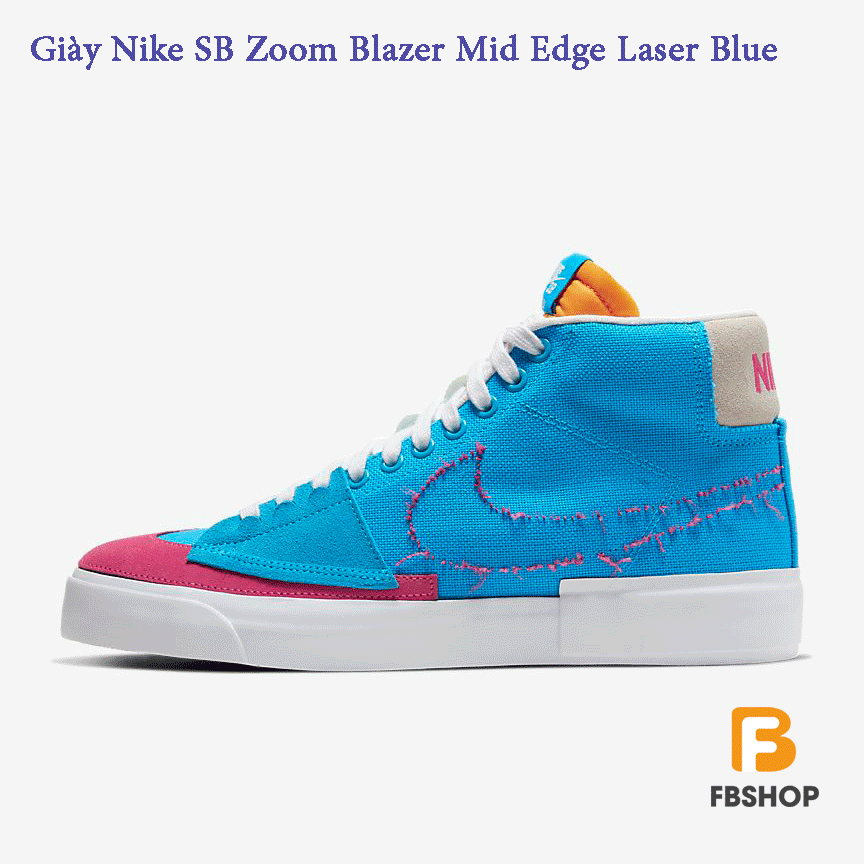 Giày Nike SB Zoom Blazer Mid Edge Laser Blue thiết kế một vòng quay DIY trên một đôi giày trượt mang tính biểu tượng. Giày Nike SB Zoom Blazer Mid Edge Laser Blue có một điểm khác biệt với những đôi giày trượt ván khác đó là các đường khâu bị sờn, lớp xốp lộ ra ngoài. Chính nhờ điều này và sự kết hợp của nhiều chất liệu mang đến cho đôi giày một vẻ ngoài độc đáo, cá tính. Mời bạn đọc tham khảo cùng FBshop nhé.