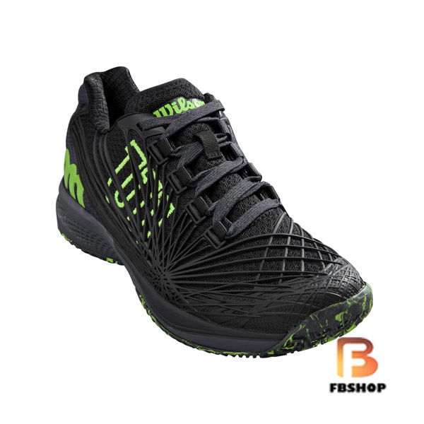 - Giày Tennis Wilson Junior Kaos 2.0 Black có hình thức khỏe khoắn trong tông màu đen là chủ đạo. Họa tiết của sản phẩm cũng rất cá tính, được trang trí bằng những sợi cao su vắt chéo nhau, làm điểm nhấn cho sản phẩm. Bên cạnh màu đen của sản phẩm là màu sự đan xen màu xanh chuối khiến sản phẩm không nhàm chán.