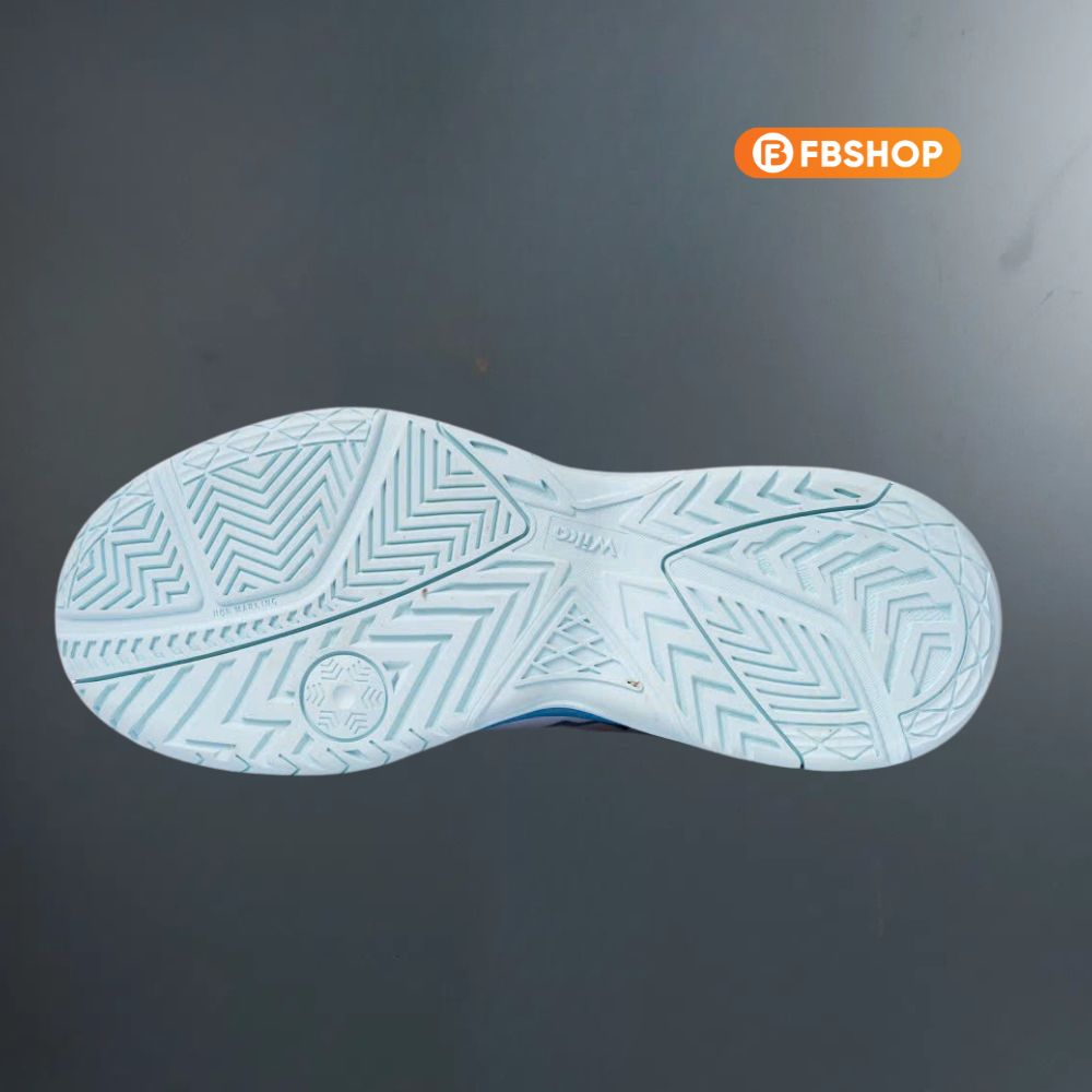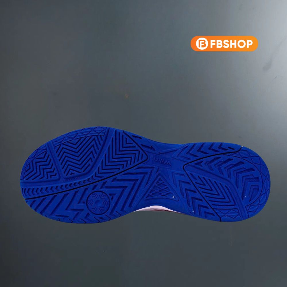 – Đế cao su LL40 và Công nghệ Non-Marking: Đế ngoài được làm từ cao su LL40 siêu bền với các rãnh vân đa chiều, tạo ra lực bám sân vượt trội trên mọi mặt sàn như thảm chuyên dụng, sàn gỗ, gạch hay cả sân xi măng. Công nghệ Non-Marking đảm bảo đế giày không để lại các vết trầy xước hay dấu màu trên mặt sàn, đáp ứng tiêu chuẩn khắt khe của các nhà thi đấu trong nhà.