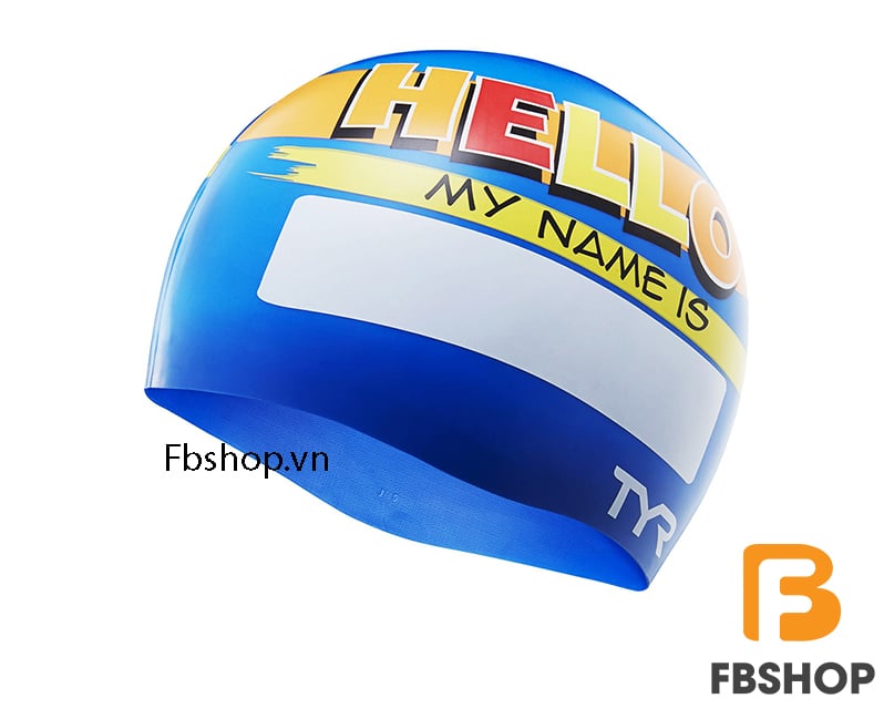 Mũ bơi TYR họa tiết Hello my name is Silicone youth swim cap – Thể hiện bản thân