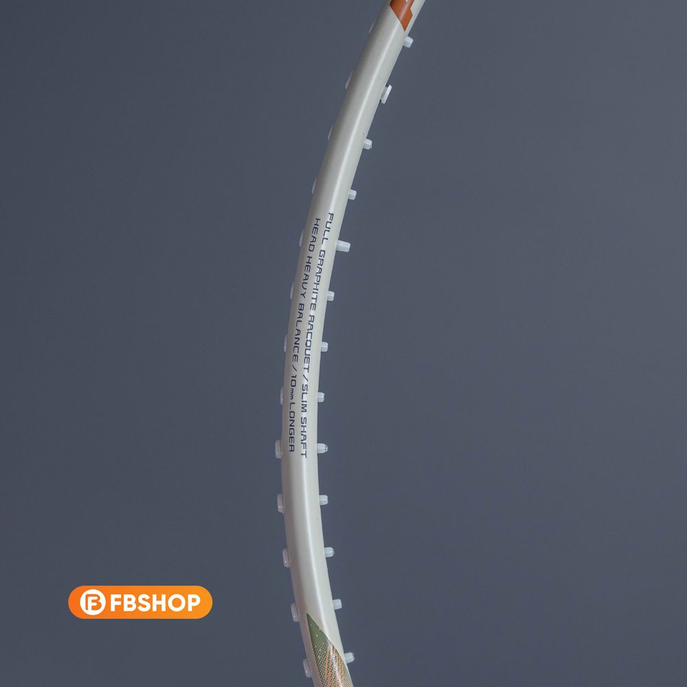 – Slim Shaft (Thân vợt mỏng): Thân vợt được thiết kế mỏng hơn để dễ dàng cắt xuyên qua không khí. Điều này không chỉ giúp giảm trọng lượng mà còn tạo ra sức mạnh tốc độ cao, hỗ trợ tối đa cho các pha phản tạt và tạt cầu tầm thấp.